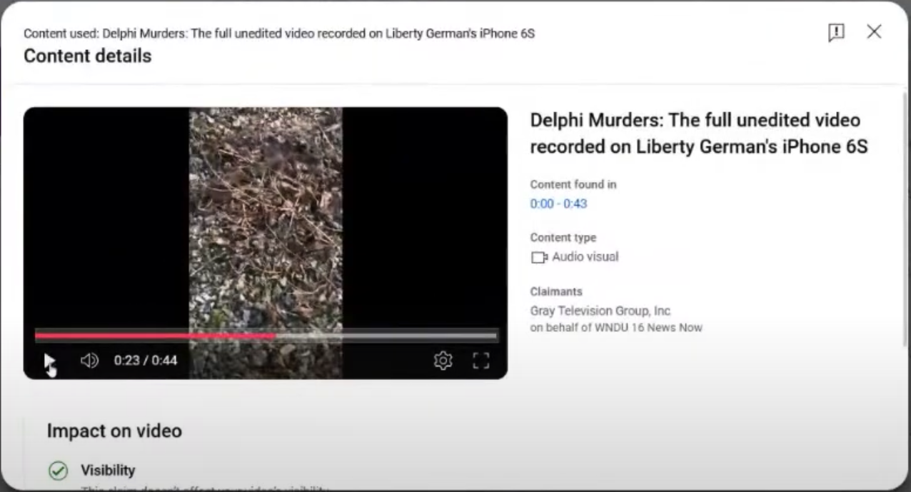 Several YouTube creators who shared or commented on the video began receiving copyright claims (not strikes) from Gray Television Group, Inc. on behalf of WNDU 16 News, an Indiana TV station.